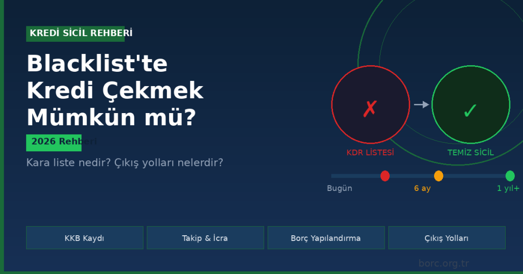 “Kara listeye düştüm, artık hiçbir bankadan kredi alamam” cümlesi Türkiye’de çok sık duyulur. Ancak gerçek durum sanıldığı kadar umutsuz değildir. Bu rehberde kara liste (blacklist) kavramının ne olduğunu, gerçekten böyle bir listenin var olup olmadığını, kredi notunuzun nasıl etkilendiğini ve bu durumdan nasıl çıkabileceğinizi 2026 yılı güncel bilgileriyle açıklıyoruz.