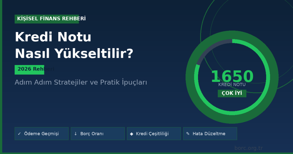 Kredi notunuz, bankalar ve finansal kuruluşlar nezdinde mali güvenilirliğinizin en önemli göstergesidir. Düşük bir kredi notu; kredi başvurusunun reddedilmesine, yüksek faiz oranlarına ve daha kısıtlı finansal seçeneklere yol açar. Bu 2026 rehberinde kredi notunuzu yükseltmek için uygulamanız gereken adımları, zaman çizelgelerini ve sık yapılan hataları detaylıca ele alıyoruz.